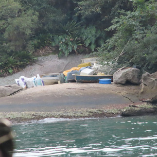 Der Ausflug war sehr touristisch, sehr brasilianisch, aber es hatte ausser mir zwei Europäer - nun, ein Schweizer und ein Deutscher. Alle schwatzten nach sehr kurzer Aufwärmzeit mit allen, es gab ganz viele Ankerstopps, manchmal auch ungeplante, mit dem Dingy ging's an die Strände, zum Schnorcheln (ohne mich) oder zum Fische Gucken (mit mir). Nach dem zweiten Strand waren auch die letzten schwimmen, alle nass, feucht, und fröhlich. Für mich gab es zum almoço gekochten Bambus mit viel Gemüse, Farofa und Bananen und Reis. Viele Fregatten (fragatas), Albatrosse (die ganz grossen, der grösste Vogel der Welt, noch grösser als die Kondore (nachzulesen im Netz), Silberreiher, Möwen und kleine Singvögel, viele, die man aus dem Urwald nur hörte, alles Mögliche in, am und über dem Wasser hatte es.