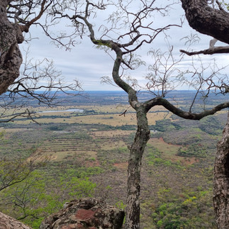 Nach etwa drei Stunden bogen wir in einem kleinen Dorf, Camisão, ab auf eine Naturstrasse und fuhren steil und abenteuerlich einen Berg hinauf, zu Fuss nur noch etwa zehn Minuten durch den Wald und uaaaau: Aussicht von paar hundert Metern Höhe auf die ganze Ebene des Pantanál!